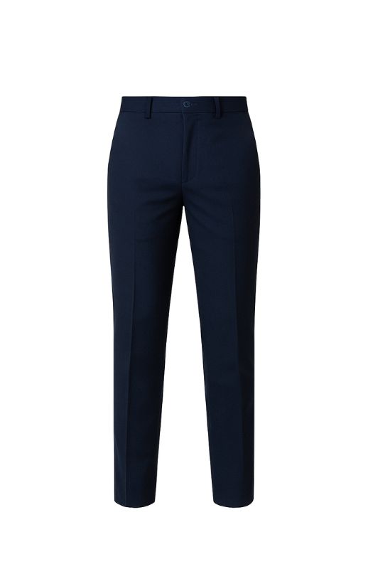 Confeccionado en 100% poliéster texturado, es un pantalón resistente, duradero y de mantenimiento sencillo. Al ser lavable en lavadora, resulta práctico para un uso continuado sin perder su forma ni la intensidad del color azul marino.